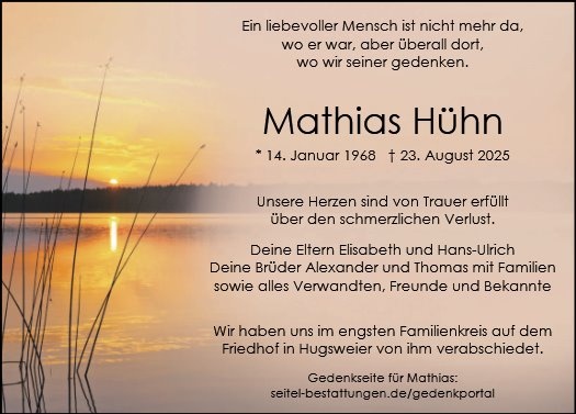 aus der Zeitung haben wir vom viel zu frühen Tod von Mathias erfahren.
