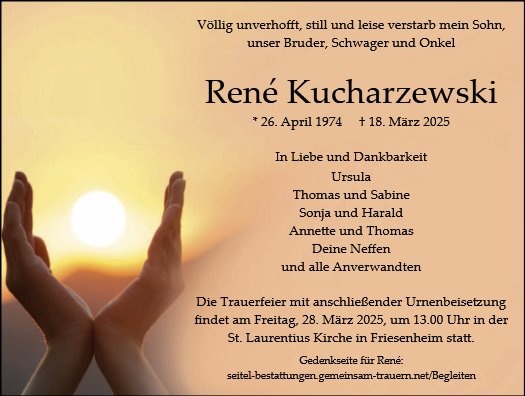 ich habe Rene vor Jahren beim Jobwechsel von der Firma Beck zu Janoschka als Personalreferent begleitet, das Einstellungsgespräch geführt und über die Jahre einen guten Kontakt zu Rene gehabt. Er war für mich ein freundlicher, zuverlässiger und flexiebler Mitarbeiter und Kollege, auf den man zählen konnte.